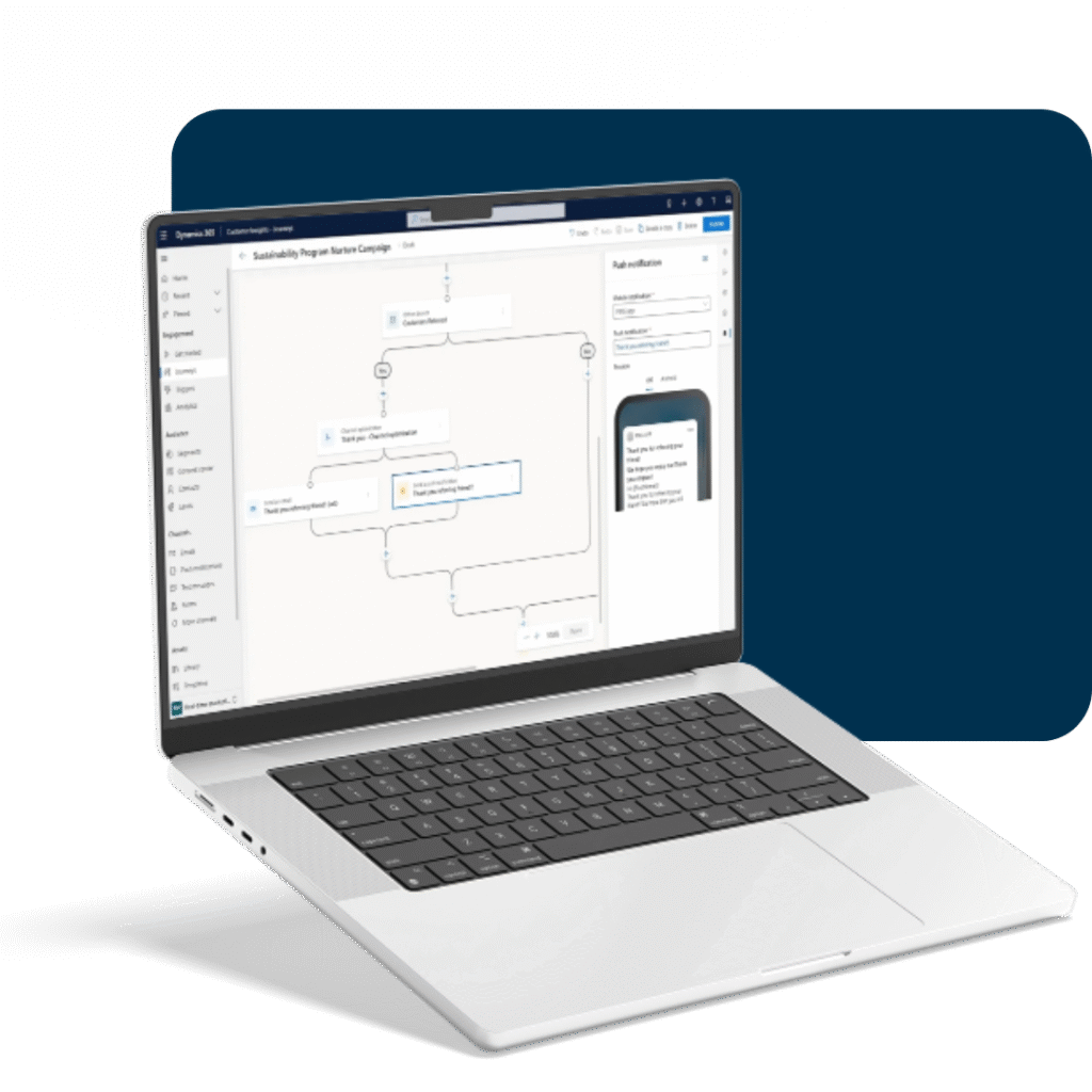 Combina dos módulos: Customer Insights – Data (perfil 360° del cliente) y Customer Insights – Journeys (automatización de recorridos de cliente).
