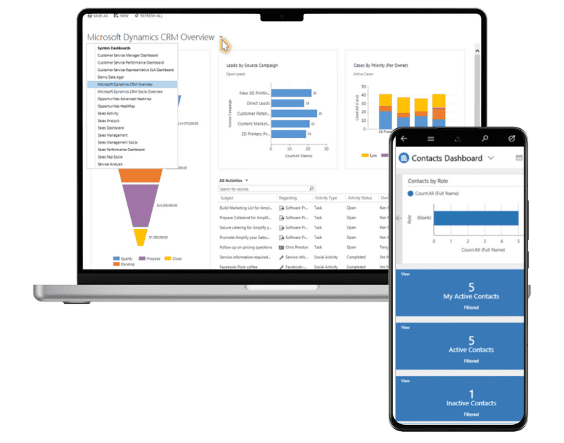 Nuestro CRM gestiona las relaciones con el cliente integrando capacidades de Ventas, Marketing y Servicio al cliente.